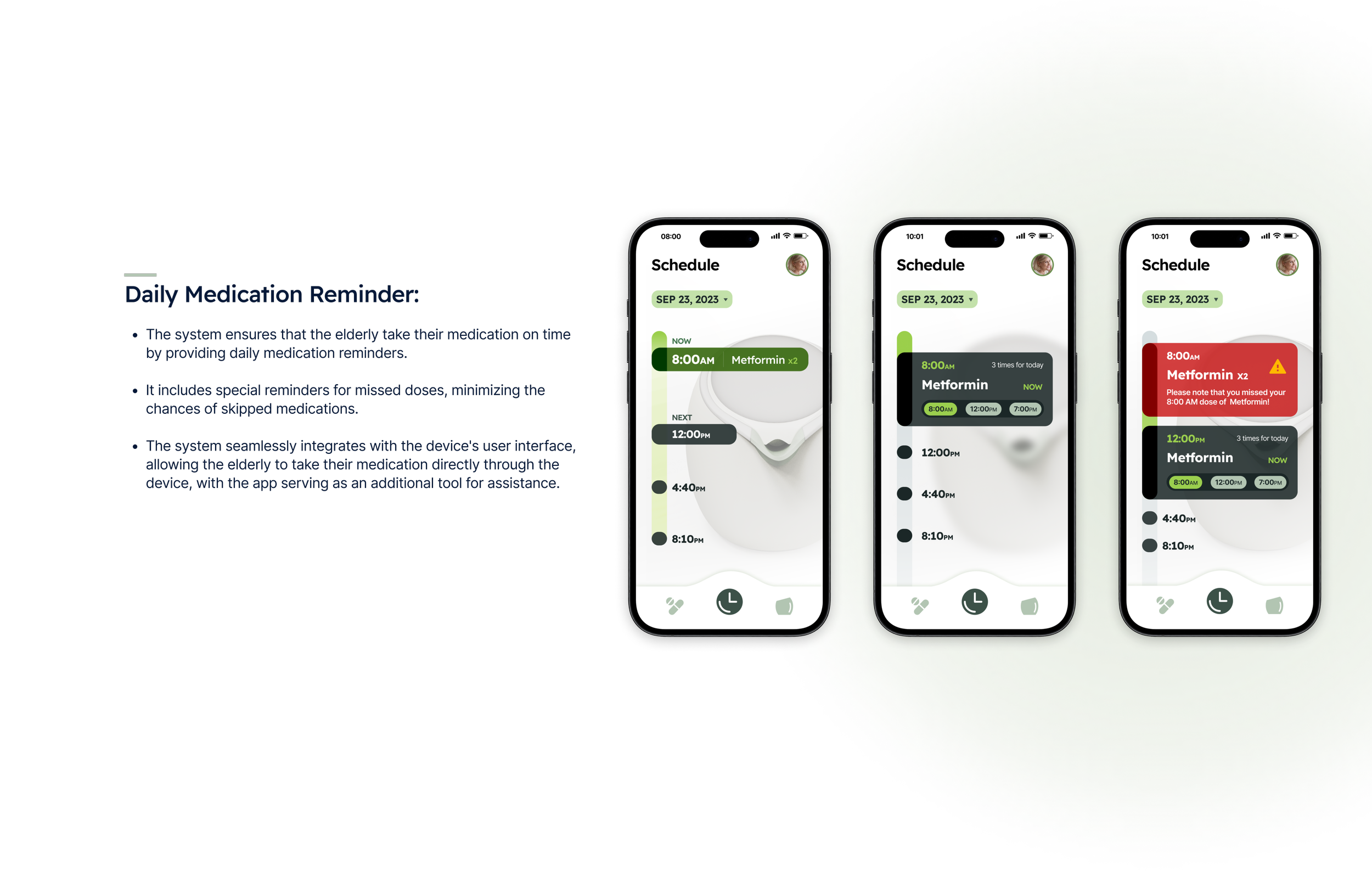 Special reminders for missed doses minimize the chances of skipped medications, enhancing adherence.
