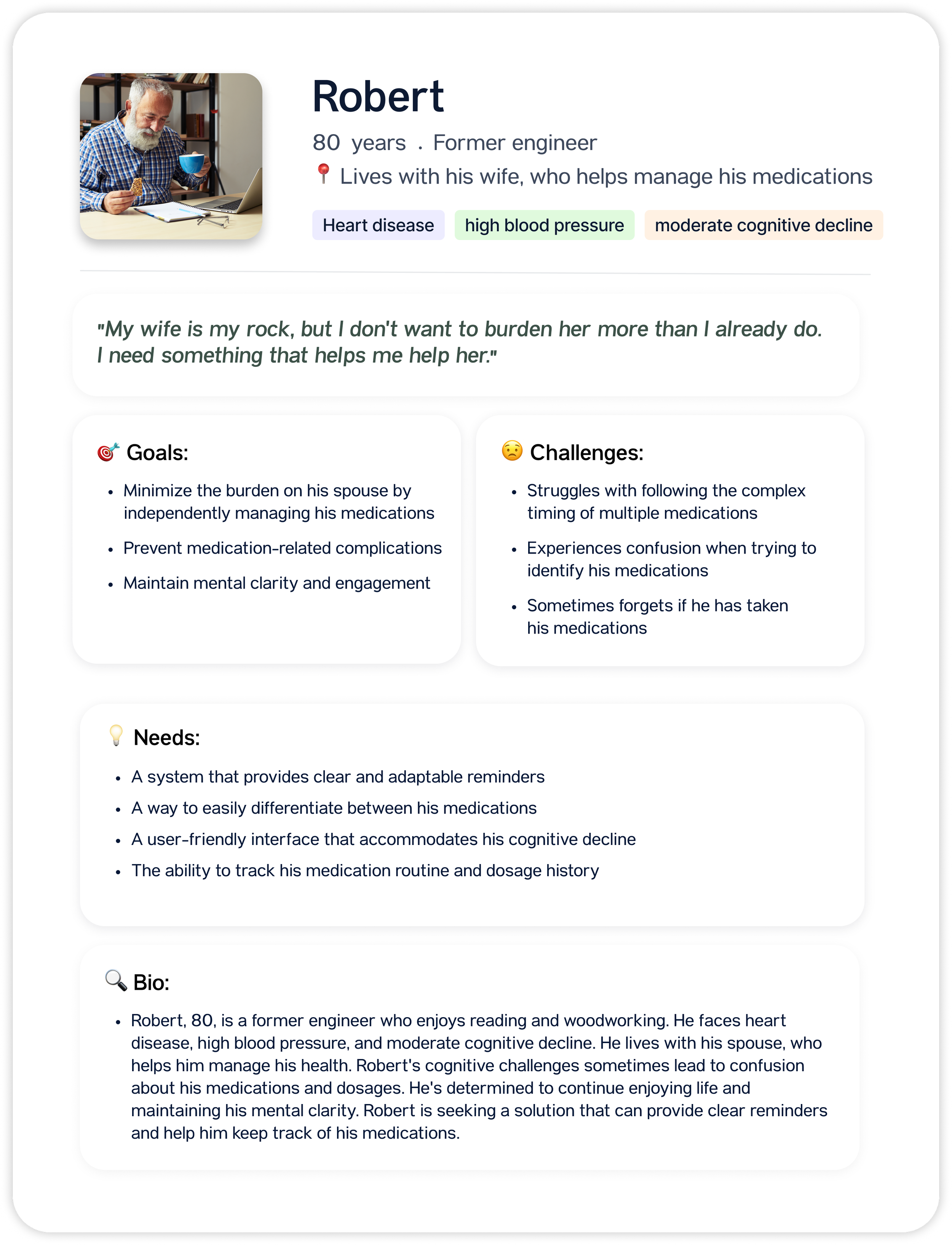 Complex Medication Management β Seniors with chronic conditions like heart disease, high blood pressure, and diabetes struggle with intricate medication schedules due to cognitive decline.