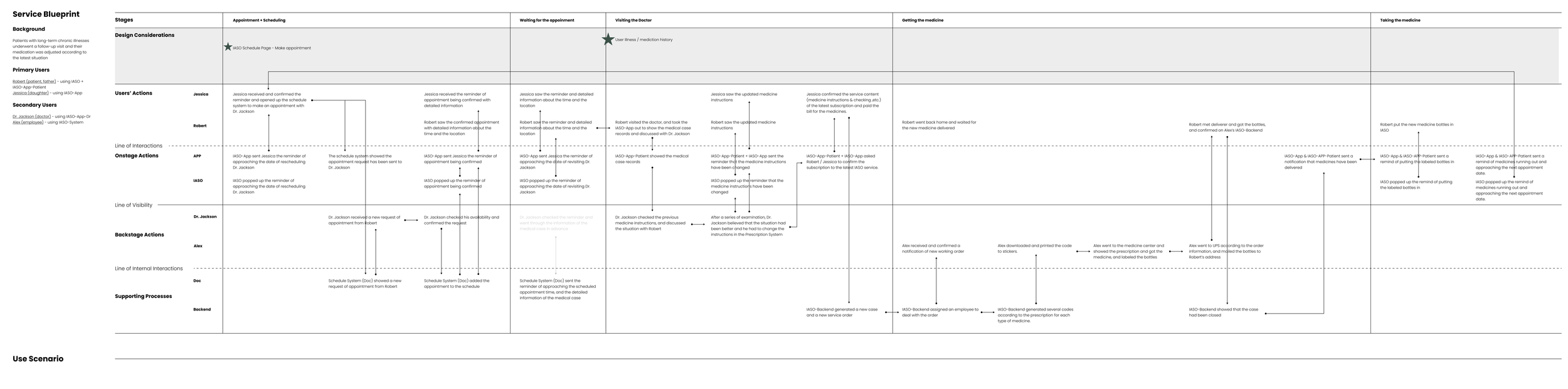The service blueprint maps the user journey, capturing both user actions and system support. It highlights key touchpoints and backend processes, helping us spot any gaps or areas for improvement in the medication routine.