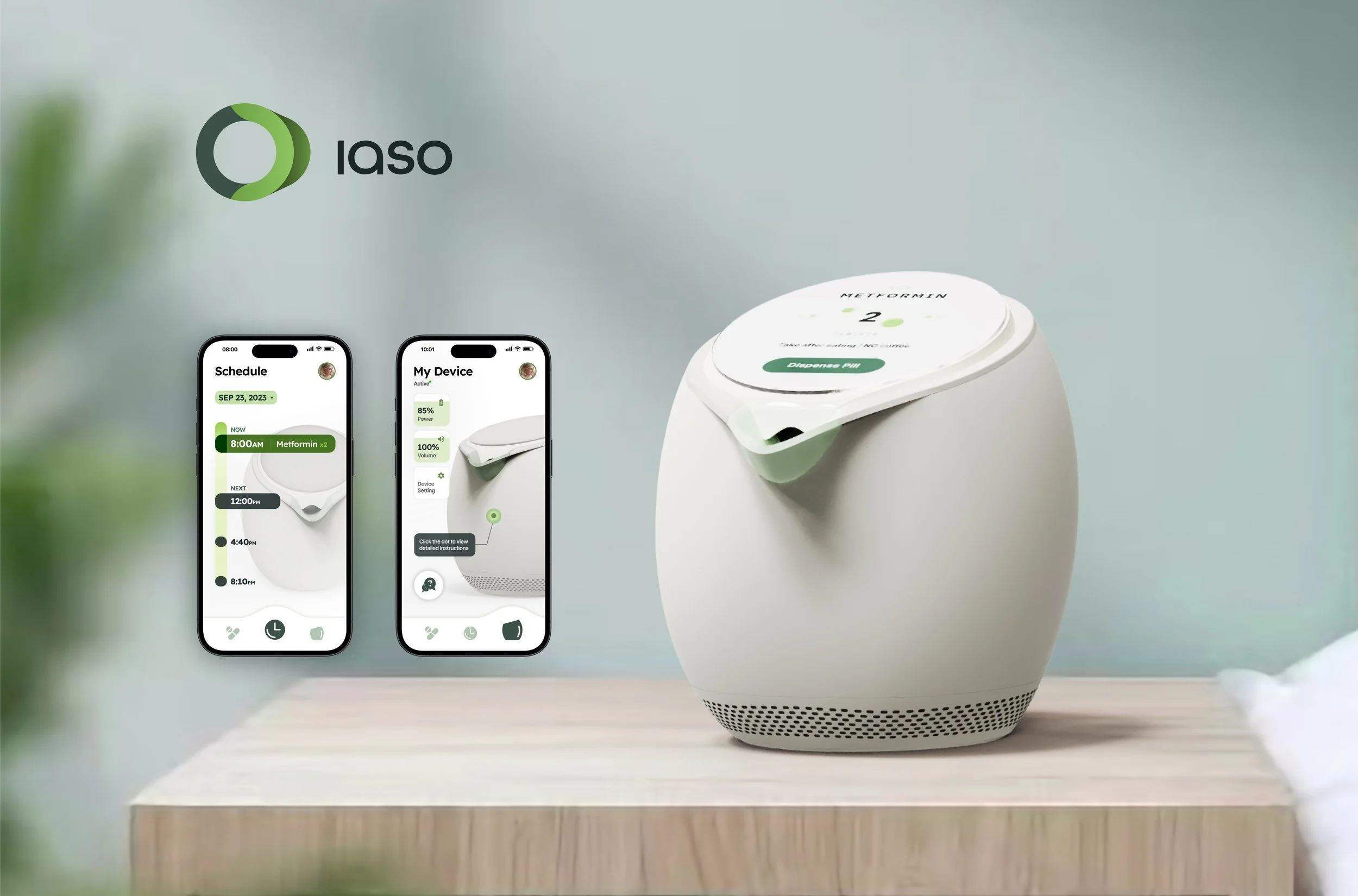 Iaso β a comprehensive medication management system tailored for older adults facing memory impairment and multiple chronic conditions. By seamlessly uniting devices and mobile interfaces, Iaso streamlines the complexities of medication management, reducing the risk of missed doses and medication mix-ups. It's a holistic solution for enhanced well-being in older adults.