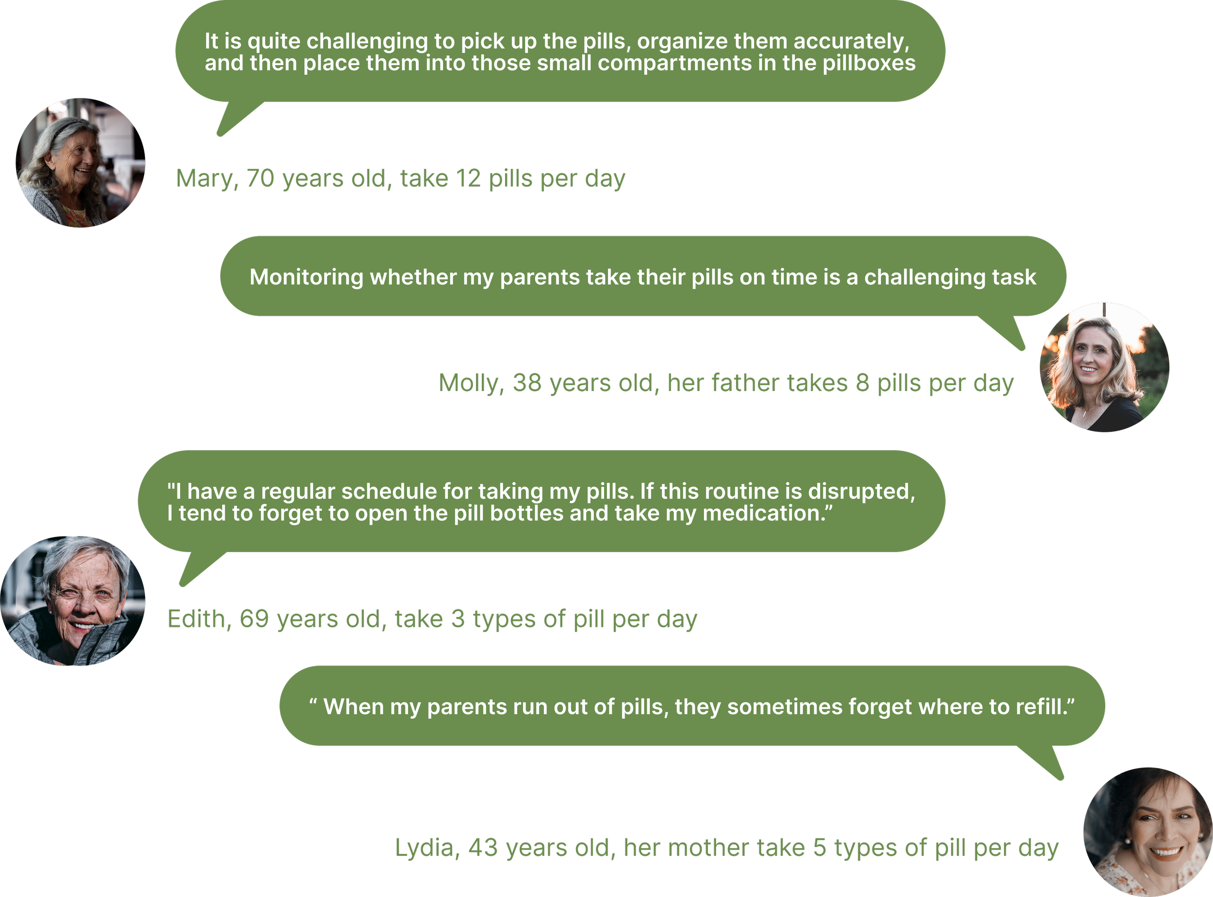 2: Confusion in Medication Order β Seniors find it challenging to remember and follow the correct order in which to take their various medications.