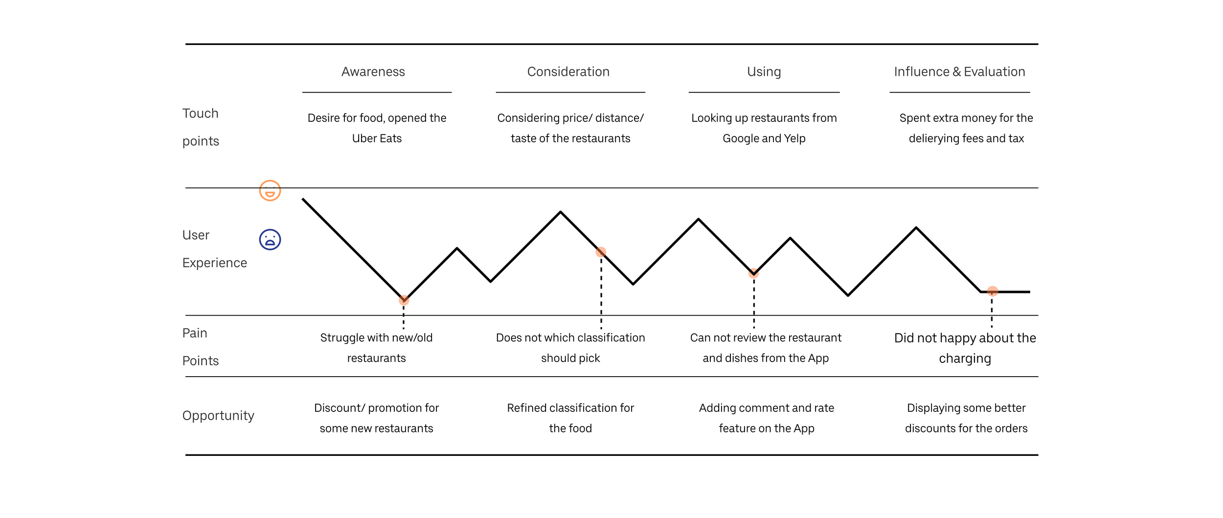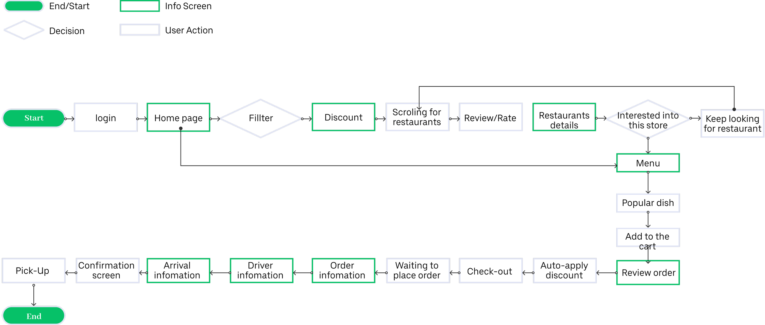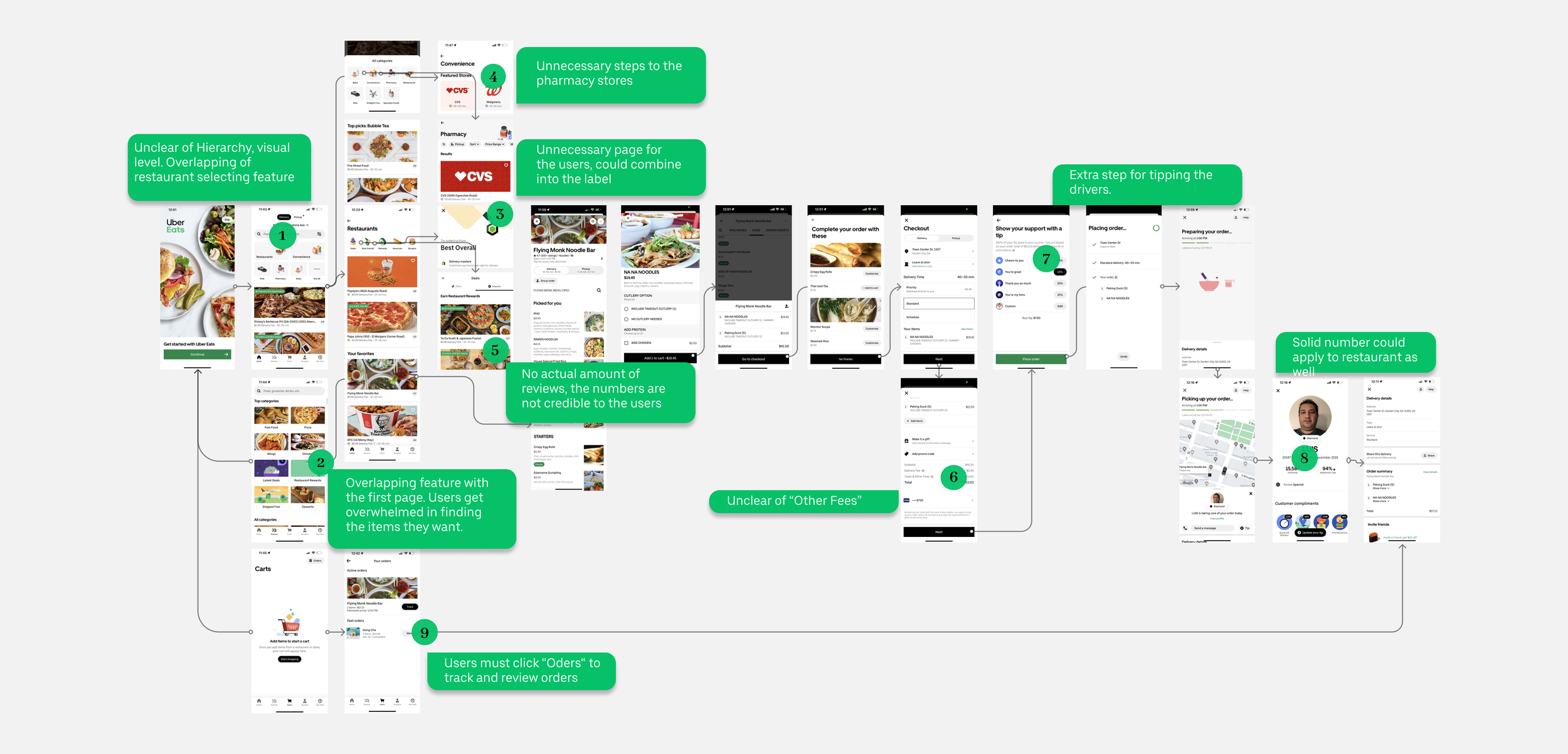 After going through the process, I made the current user flow of Uber Eats while discovering the problems from a standing End-User perspective.